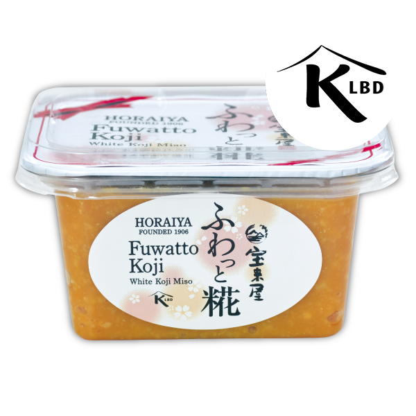 Fuwatto Koji Miso est un miso blanc, une nouveauté dans la gamme de miso de Horaiya. C’est un miso très spécial car il comprend de l’amazake, une boisson de riz fermentée nutritive, dans sa production. Ce miso à la saveur sucrée a un goût rond et une texture consistante.